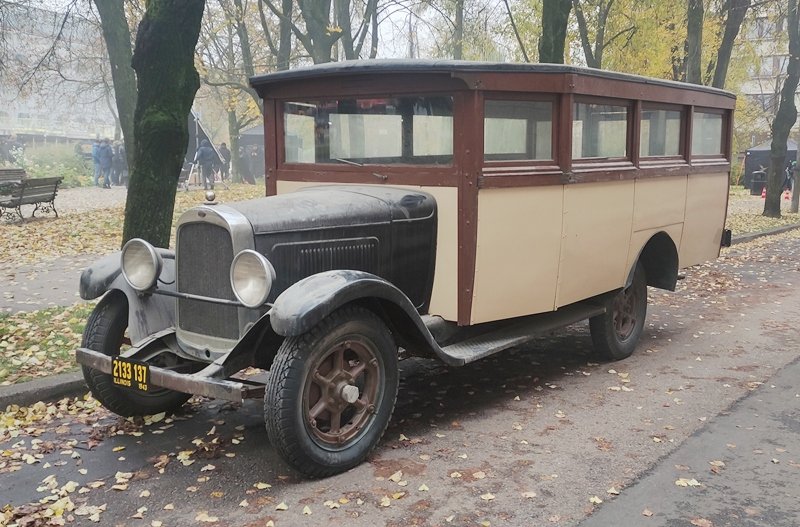 Tarpukario viešojo transporto darbinis arkliukas. Tokiais ir panašiais autobusais buvo pervežami keleiviai tarpukario Lietuvoje. Jame net 16 sėdimų vietų.